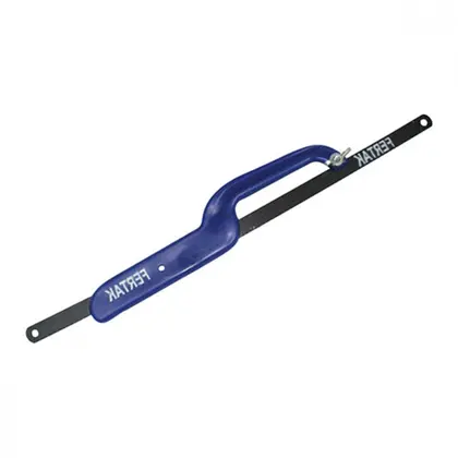 O mini arco de serra Fertak lâmina em aço carbono com corpo em polipropileno de alta resistência descomplica esse trabalho. Também pode ser usado para cortes em plástico, madeira, acrílico, entre outros.